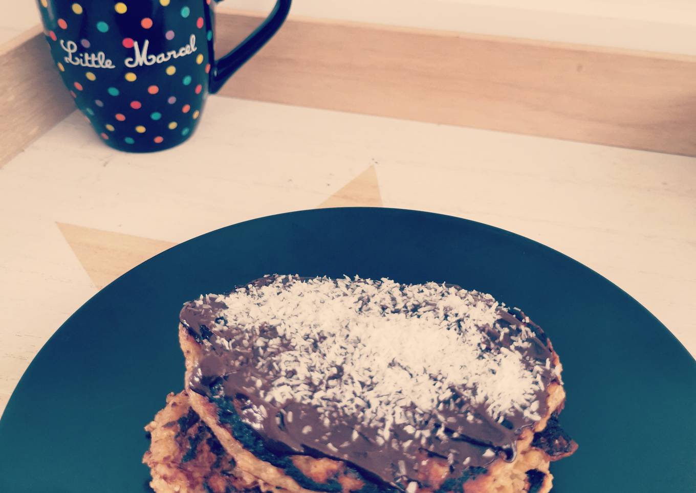 - Servez chaud avec la garniture de votre choix (ici chocolat fondu et coco râpée)