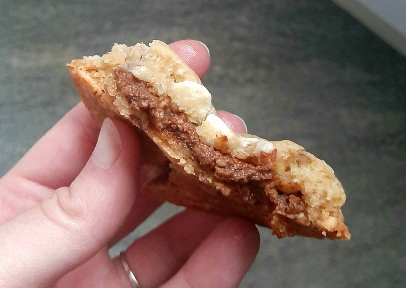 Des cookies oui mais fourrés c'est encore mieux ! J'ai utilisé un praliné pécan et des pépites de chocolat blanc mais les cookies sont adaptables à tous les goûts et toutes les envies évidemment alors faites vous plaisir !